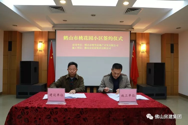 12月11日,鶴山市桃花園小區(qū)簽約儀式在房建集團(tuán)會(huì)議室舉行,房建集團(tuán)董事長(zhǎng)顏琦、總經(jīng)理何景輝、明華房地產(chǎn)董事長(zhǎng)麥志明等同志出席儀式。
