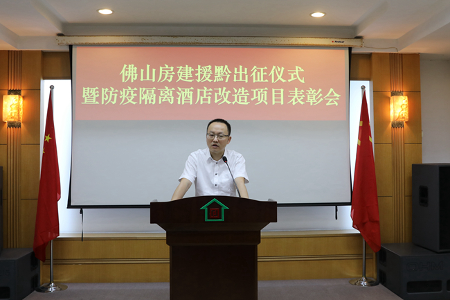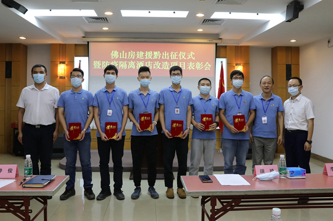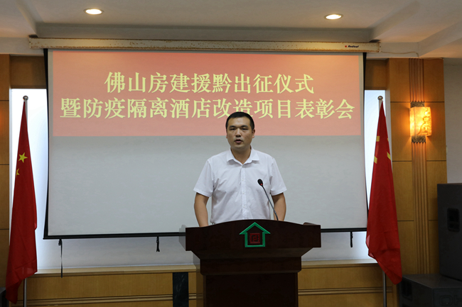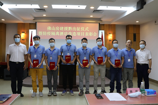 7月8日上午,佛山房建集團(tuán)舉行援黔出征儀式暨防疫隔離酒店改造項目表彰會,一方面為赴貴州黔東南州對口援建青年工程師包劍靈同志送行,另一方面為防疫隔離酒店改造項目的優(yōu)秀工作者進(jìn)行表彰。
