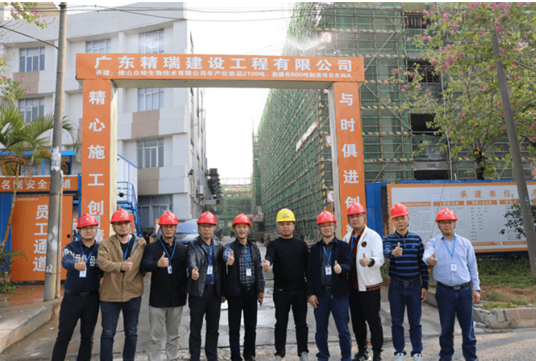 在精瑞公司承建的佛山眾繪生物車間項目施工現場,領導們對精瑞公司在工程業(yè)務上的發(fā)展表示了充分肯定,并鼓勵要在傳承的基礎上,大膽創(chuàng)新,尋求突破,積極開拓思路,全方位加強項目建設,拓寬項目開發(fā)渠道,夯實發(fā)展基礎。